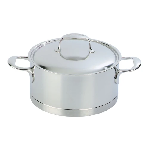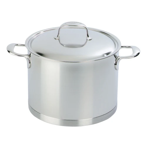 The straight sided pans boast a 7-layer base, InductoSeal, whose copper disk ensures impressive heat conduction. Proprietary technology ensures the base stays flat even when heated. The patented Silvinox surface treatment maintains the beautiful silvery white matte appearance. Enjoy easy maneuverability with the stay-cool, welded handles while the rolled rims encourage dripless pouring.