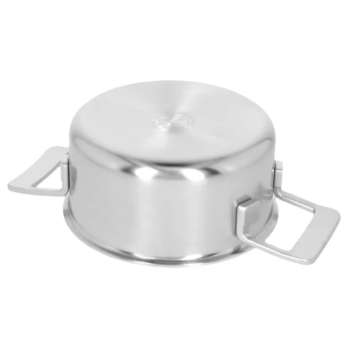 A lidded stew pot is a mainstay of every properly equipped kitchen, and is just one of the pots featured in Demeyere's Industry series, a range of cookware developed and designed by the Belgian designer Stefan Schöning that is synonymous with high-quality cookware. The lidded stew pot is ideal for making a wide variety of dishes including sauces, portions of vegetable soup and quinoa. In a design inspired by American cookware, it also has a clean, neat, refined exterior made entirely from premium stainless steel. The 5-ply base is exceptionally good at distributing heat, even at low temperatures. With a height of 8 cm, a diameter of 16 cm and sufficient space for 1.5 L of soup, stock or other dishes, the stew pot is ideal for small families or one-person households. The pot is made easier to handle by two stainless steel handles on the sides of the pot: these handles don't absorb heat and therefore remain cool during cooking. Impress your family and friends with a variety of different dishes cooked in this lidded stew pot from Demeyere.